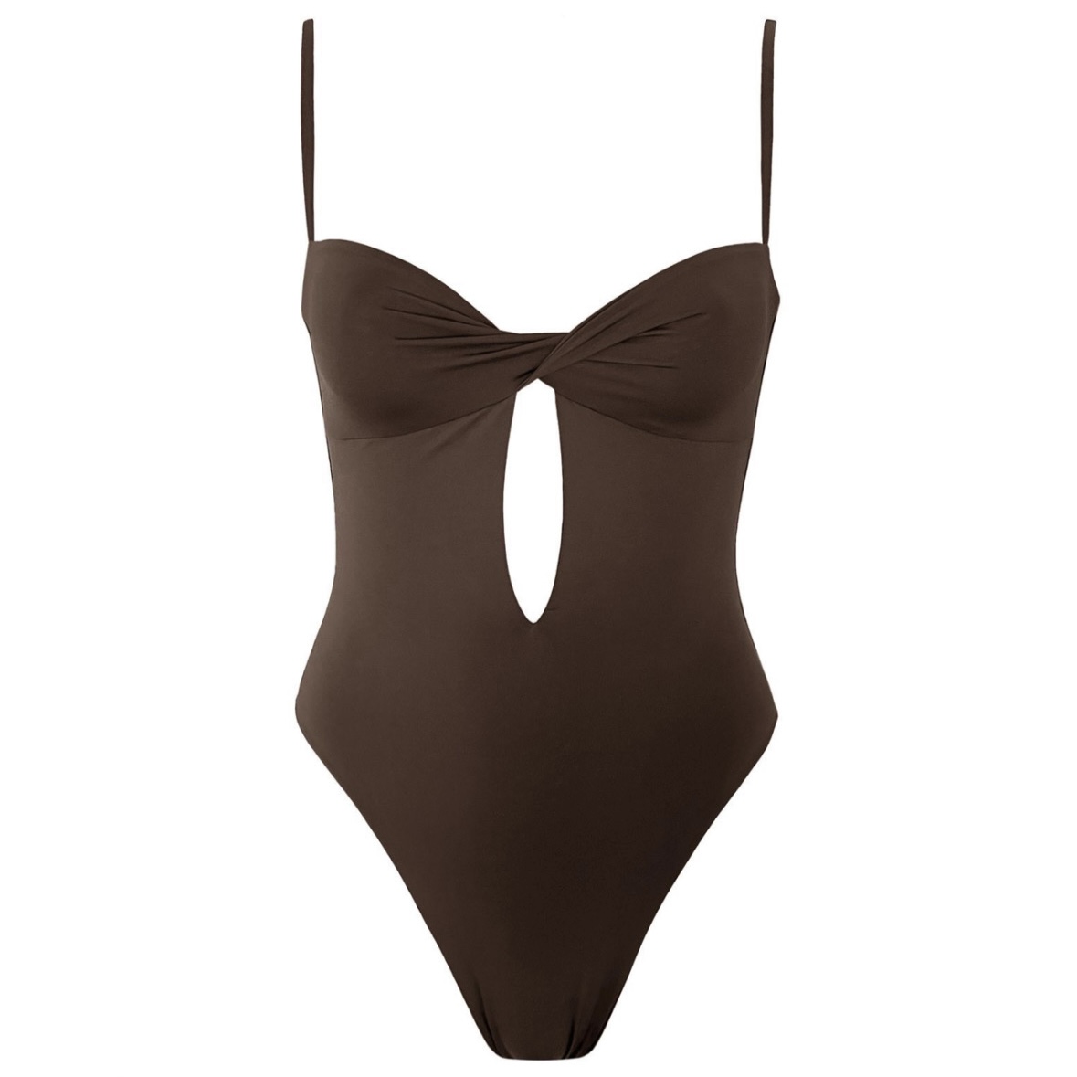 El modelo Cocoa Twist combina elegancia y sensualidad en una silueta atemporal. Su tono marrón profundo resalta la piel bronceada y aporta un aire sofisticado y moderno.